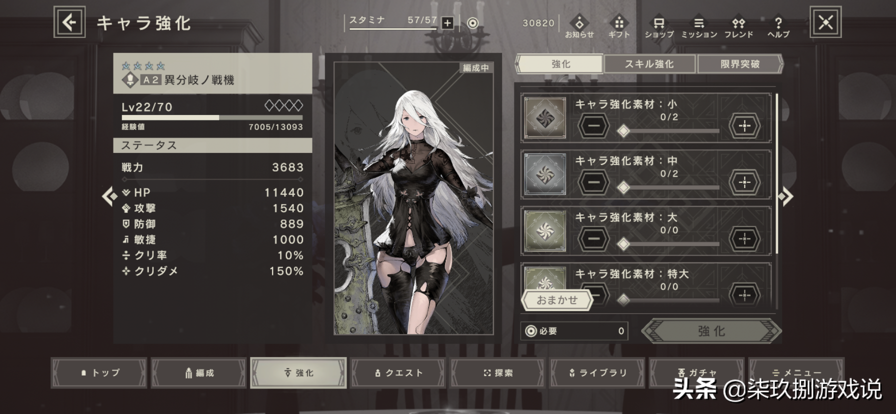 除了回合战斗玩法之外,游戏也拥有氪金手游中常见的角色和装备养成玩法。但与以往氪金手游将装备和人物分开抽取不同,《尼尔:Re》中是通过抽取扭蛋池的特定武器从而解锁角色,对于运气不好的非洲玩家而言,可能会获取不佳体验。